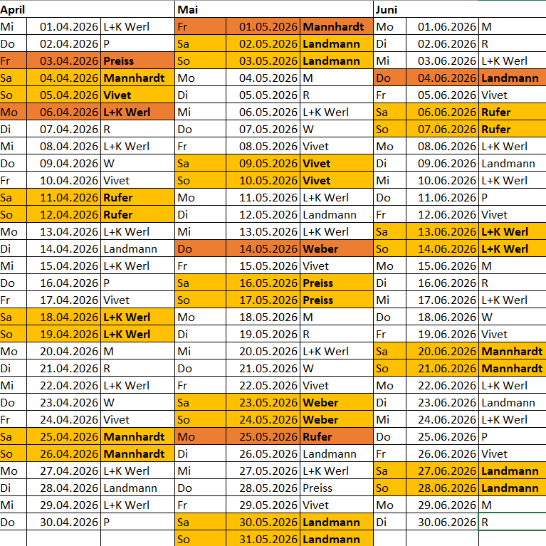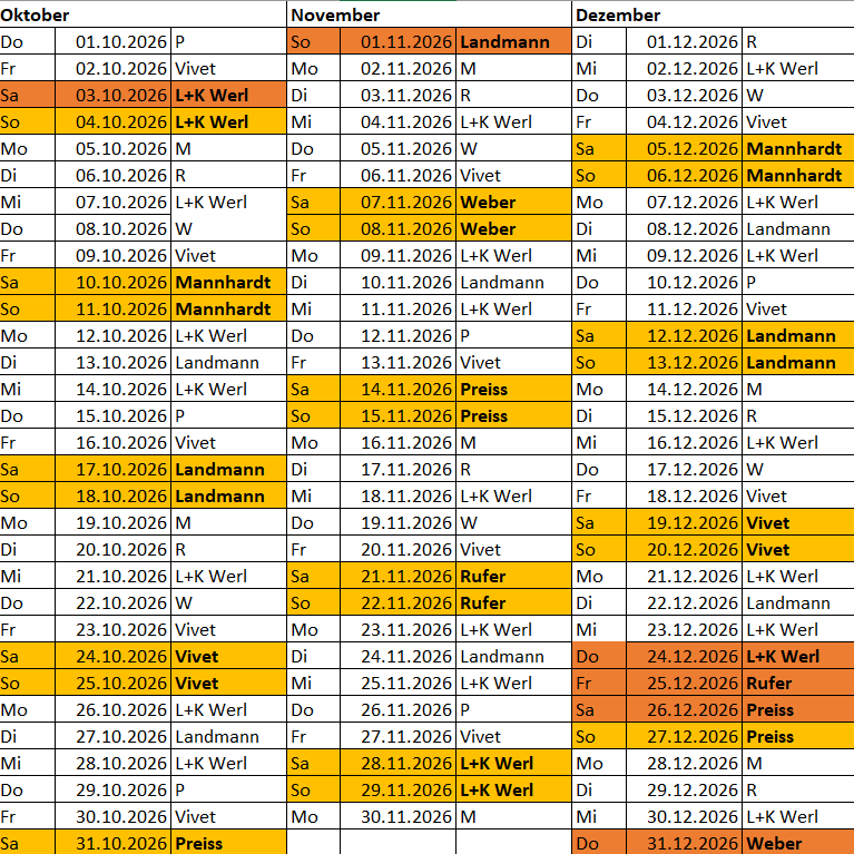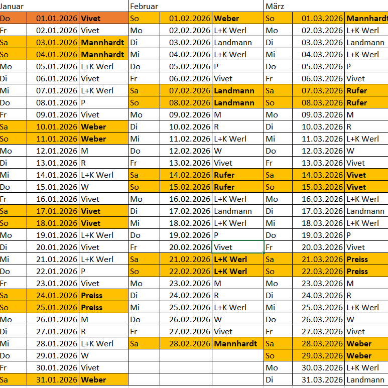 Tierärztlicher Notdienstplan Soest - Ost 01. 01. 2026 - 31. 12. 2026